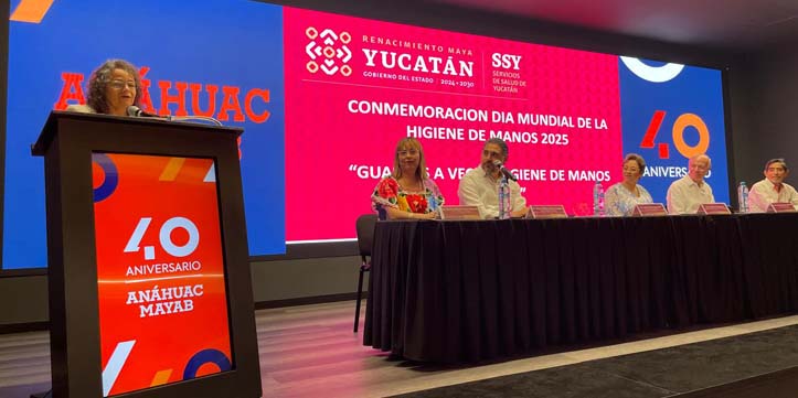 El miércoles 30 de abril de 2025, se llevó a cabo la Conmemoración del Día Mundial de la Higiene de Manos, del Programa Anual de Trabajo 2025, del Comité Estatal de Calidad en Salud del Estado de Yucatán (CECASEY). El evento tiene como objetivo promover prácticas de higiene de manos de acuerdo con los 5 momentos establecidos por la Organización Mundial de la Salud (OMS) y el uso apropiado de guantes dentro del flujo de trabajo de atención en salud. El acto se realizó en la Universidad Anáhuac Mayab, con la presencia de la Dra. Judith Elena Ortega Canto, Secretaria de Salud y Directora General de los Servicios de Salud de Yucatán, el Dr. Miguel Alberto Alcocer Gamboa, Director de Planeación y Desarrollo de los Servicios de Salud, la Dra. Blandina del Rosario Lizama Maldonado, Secretaria Técnica del Comité Estatal de Calidad de los Servicios de Salud, en representación del Rector de la Universidad Anáhuac Mayab Ing. Miguel Pérez Gómez, la Vicerrectora Académica Dra. Marisol Tello Rodríguez y el Dr. José Manuel Echeverría y Eguiluz, Director de la Escuela de Medicina de la Universidad Anáhuac Mayab. Asistió la Lic. Lisler Jannet Escalante Escalante M.A.P., en representación de la Comisión de Arbitraje Médico del Estado de Yucatán (CODAMEDY).
